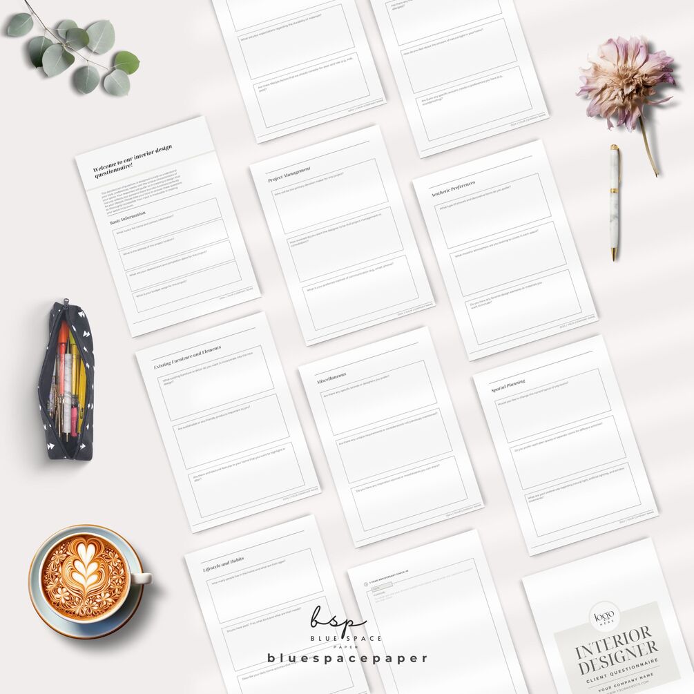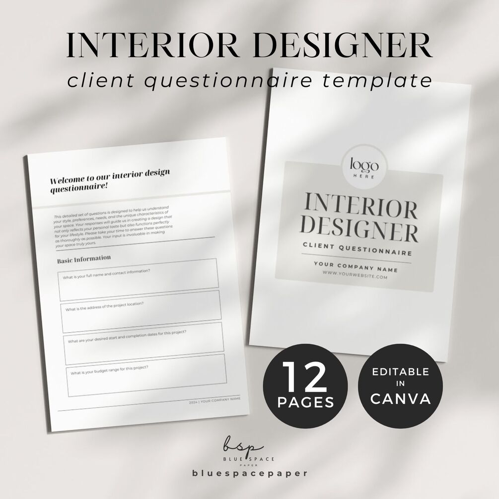 ◥1 PDF to access your template in 12 pages of Interior Design Client Questionnaire (13 with cover)