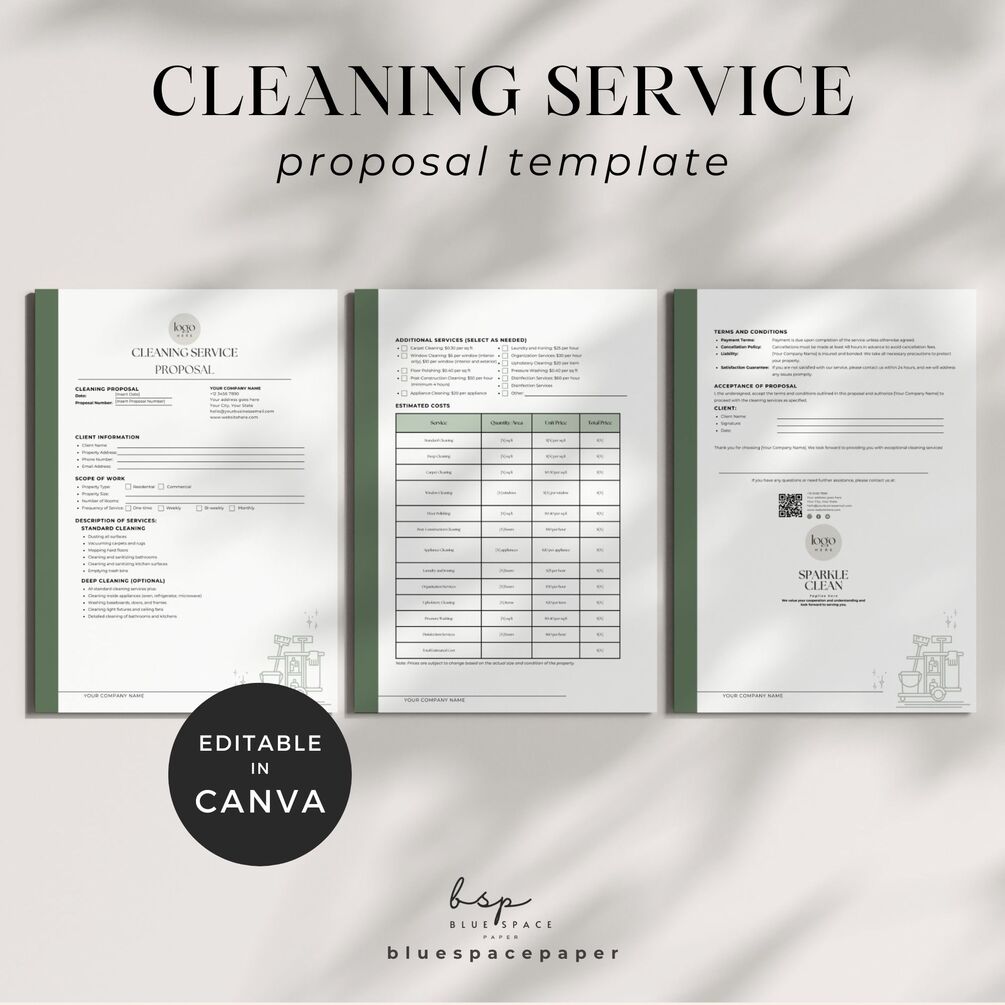 Cleaning Proposal Template Canva | Professional Office & Residential Cleaning Estimates