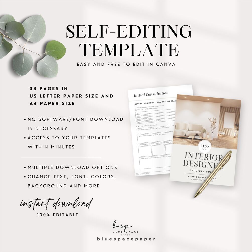 Interior Design Starter Services Guide with US and A4 paper size in CANVA TEMPLATE