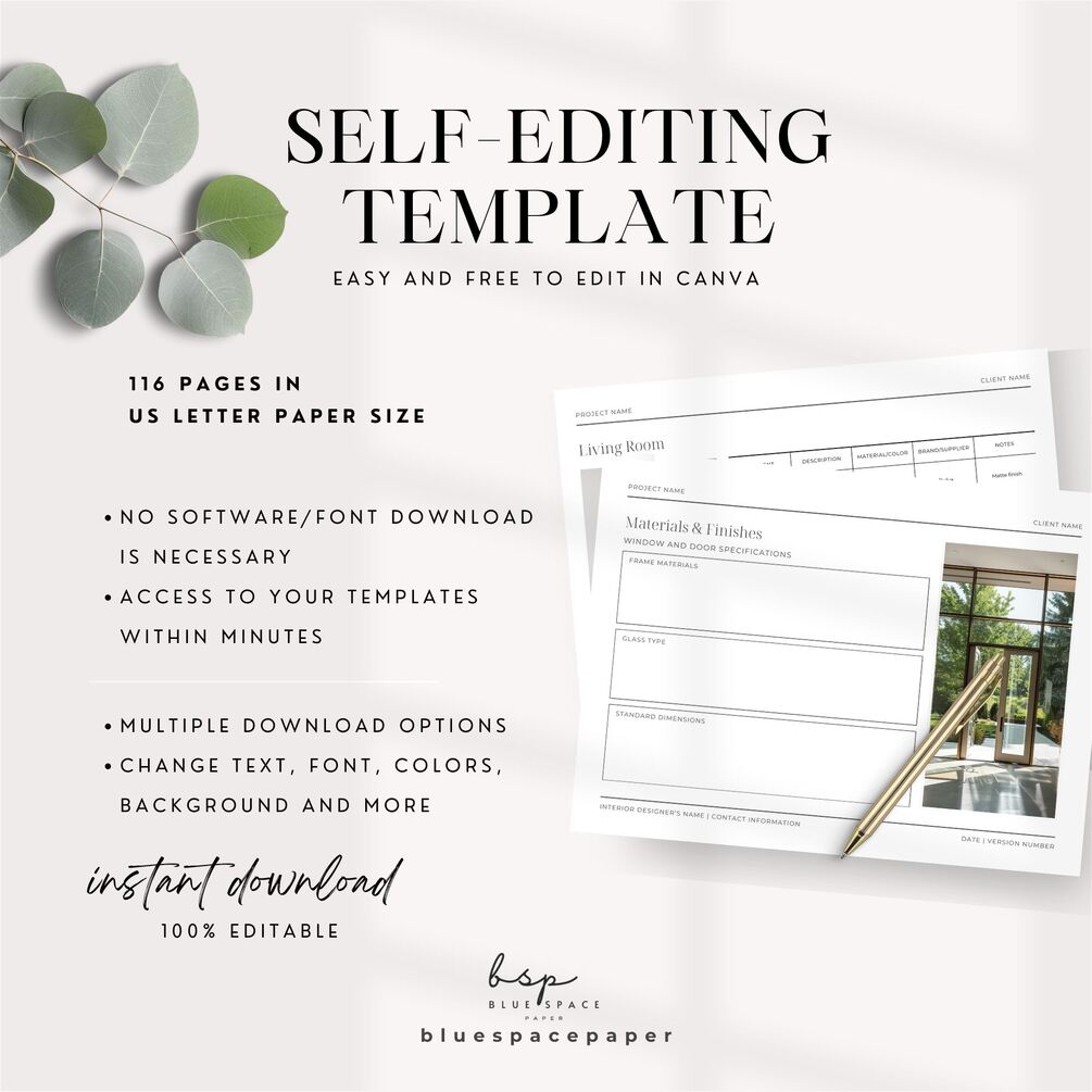 Interior Designer Finishes Template with US letter paper size in CANVA TEMPLATE